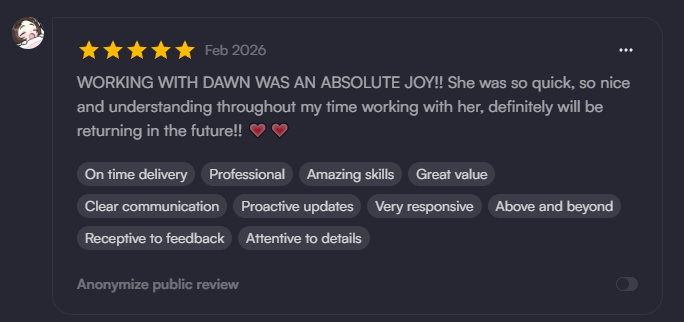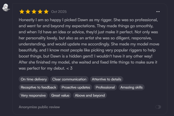 I'm Dawn, the creator behind Dragonheart Café; a warm, character-driven brand built around art, rigging and livestreaming. As a VTuber myself, I understand the importance of having a model which conveys your unique spirit- I specialize in personalised rigs that feel natural, responsive, and full of life.